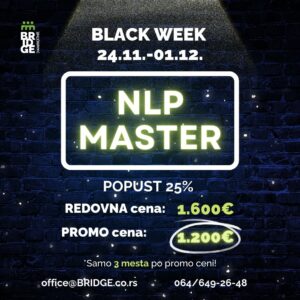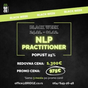 Prijavom u periodu između 24.11. i 01.12. ostvarujete 25% popusta na NLP Practitioner trening koji startuje 13. aprila 2024.
